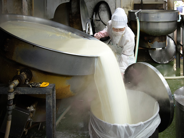 大豆を生のまま搾って作った豆乳は栄養価が高く、出来上がった豆腐も風味豊かで濃厚な味わいになります。