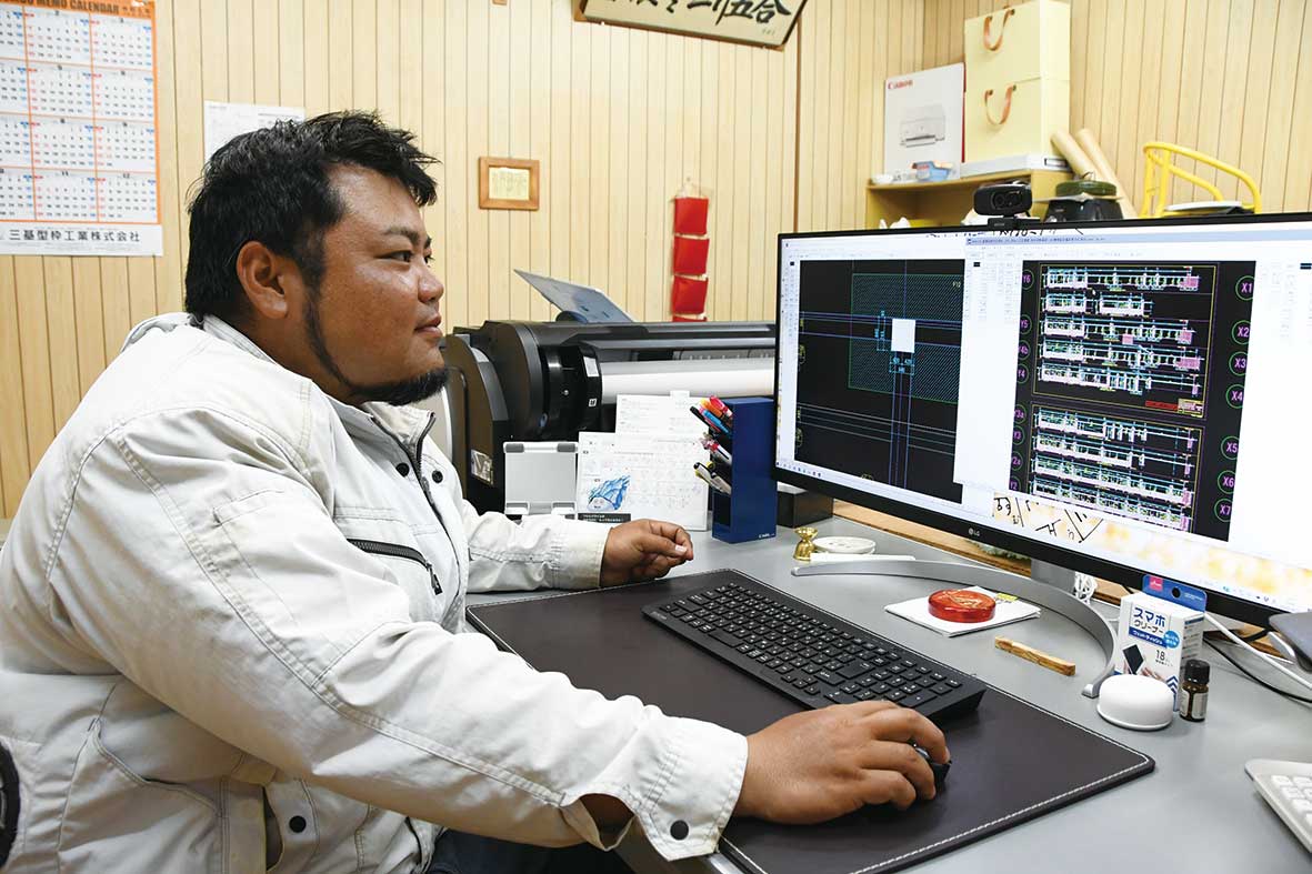 また、仕事を通じて成長してほしいと願い、あいさつや言葉遣いなどの基本や、型枠用図面作成や見積作成なども指導しています。