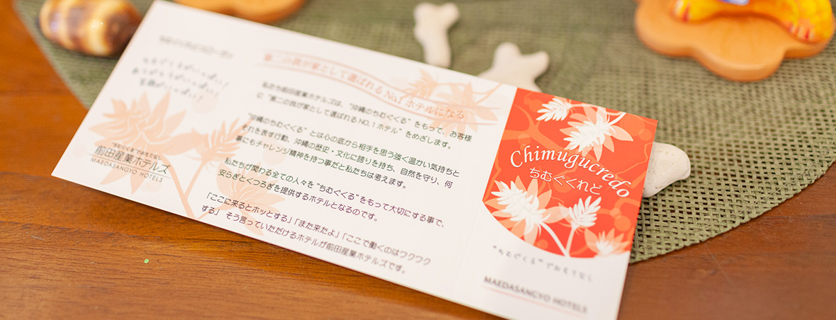 経営理念の「ちむぐくる」とラテン語で信条・信念を表わす「クレド」を掛け合わせた造語ですが、小さなカードにして従業員全員が携帯しています。