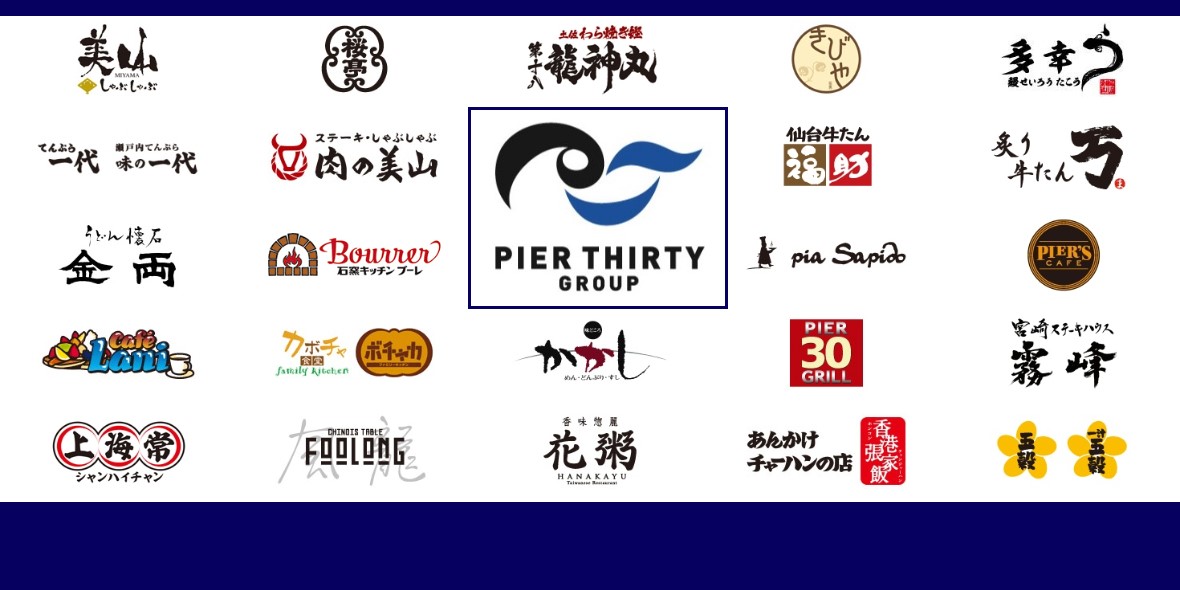 | 事業内容 | 飲食チェーン店舗の経営・運営およびFC店の管理、経営指導 【和食】 「一汁五穀」「五穀」「かかし」「しゃぶしゃぶ美山」「とんかつさくら亭」 「きびや」「てんぷら一代」「龍神丸」「仙台牛たん福助」「炙り牛たん万」 「鰻せいろう多幸う」「ステーキ・しゃぶしゃぶ肉の美山」「スエヒロ」「しゃぶ杏」 【洋食】 「PIER 30 GRILL」「pia Sapido」「ダイヤモンドステーキ」「霧峰」「キッチンブーレ」「薩摩」 【中華】「上海常」「風龍」「花粥」 【カフェ】「PIER'S CAFE」 【フードコート】「香港張家飯」「上海キッチン」 |