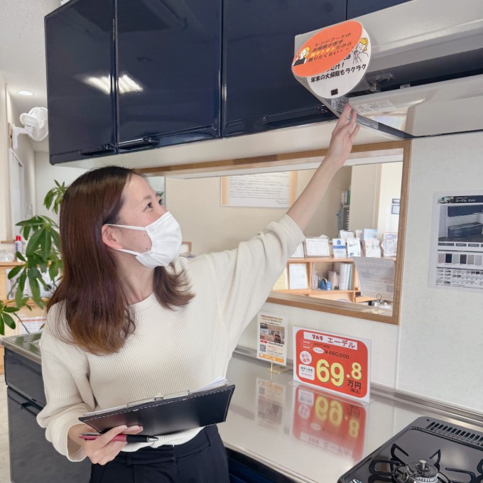 ショールームにご来店のお客様への受付から展示商品の説明、営業さんへ引き継ぐまでの仕事です。お住まいの悩みは何か、どんなリフォームをしたいのかなど、世間話も交えながらお客様のお話に耳を傾ける、人に寄り添う大切な役割です。