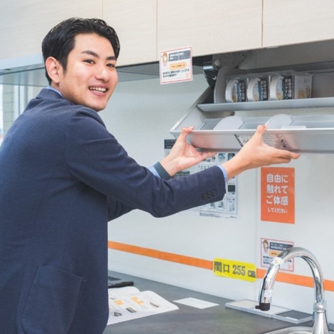 お住まいに対する悩みや不満、不便さをヒアリングし、お客様のニーズに応える最適なリフォームプランを提案する仕事です。WEBや電話からお問合せやショールームへ足を運んでくださる客様へ丁寧に対応しながら信頼関係を築いていき、ご契約からリフォーム終了後まで担当します。