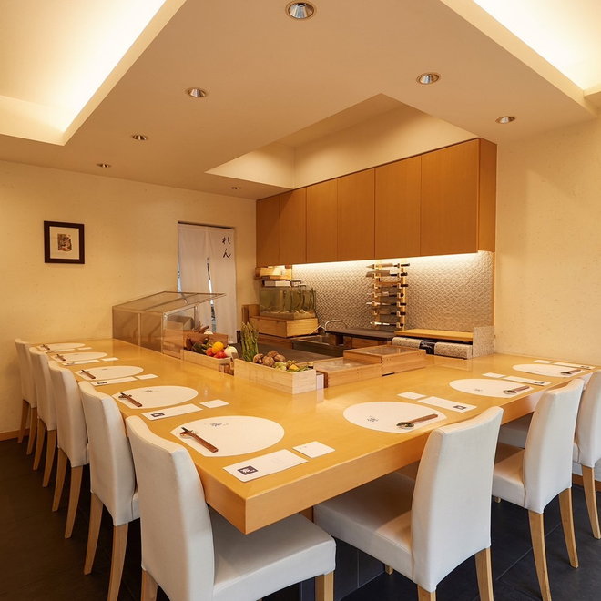 白木がふんだんに使用された店内では、気持ちのよいリラックスした空間になっており、デートや誕生日といった記念日、または、会食や接待といったビジネスシーンにおいても、最適なお店となっています。