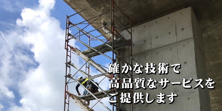 | 事業内容 | 外壁塗装仮設足場・新築工事用仮設足場 地質調査用仮設足場(ボーリング足場) 仮設足場・とび工事・高所作業全般 道路占用申請業務 足場資材リース 運搬(重量物・軽量物 |