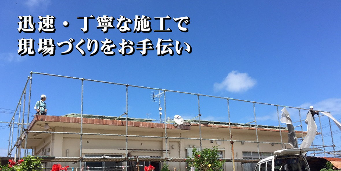 仲朝組は、改修工事・新築工事・土木工事などの足場組立・解体工事を専門的に行う会社です。