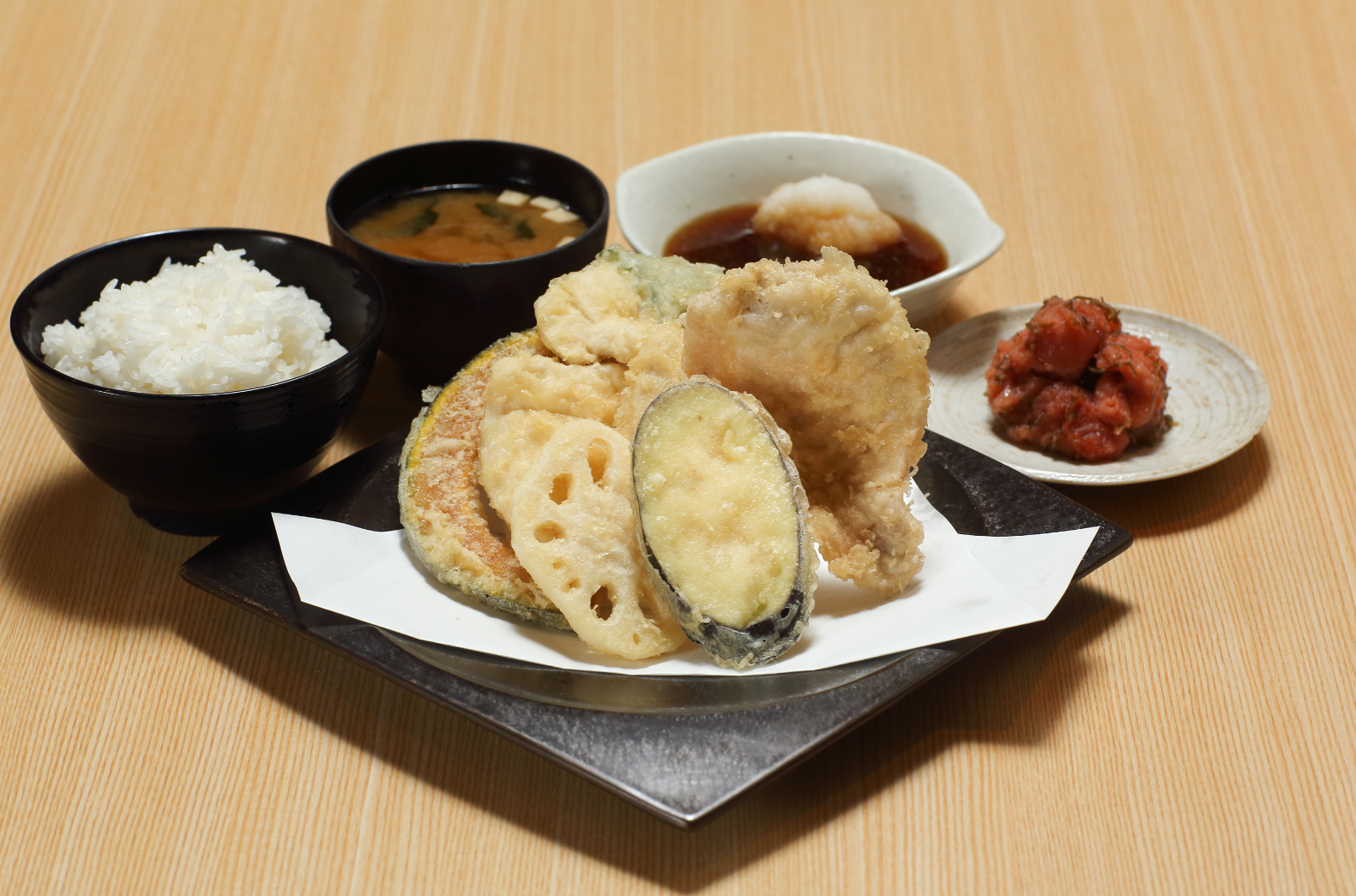 それは、野菜や魚の旨さを引き出しながら、その旨さを閉じ込める黄金色の薄衣に秘密が…。でもそれだけではありません。「たかお」は、栄養豊富な土から生まれたみずみずしい野菜や、寒冷地で旨味をたくわえた海の味覚など、食材にもこだわっています。