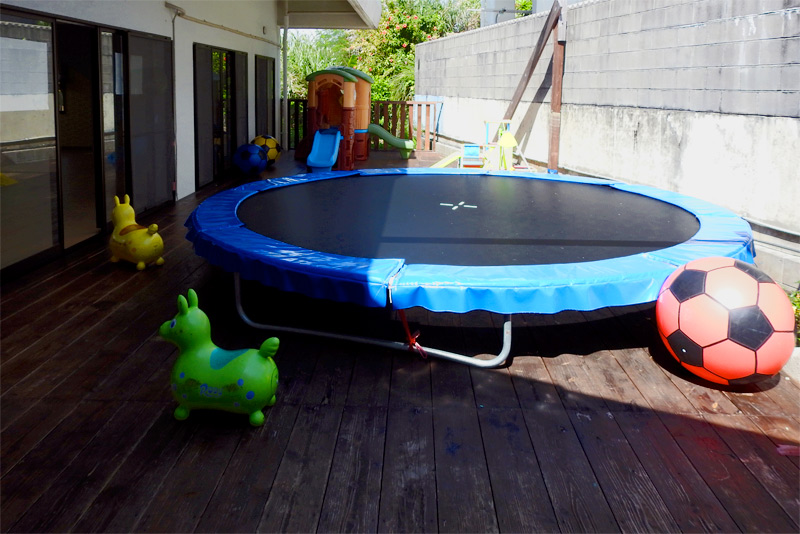 トランポリン・ポール・マットを使った体育遊び行います。