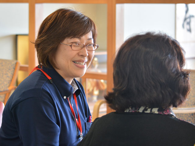 また、ケアハウスひまわりでは入居者様との日常的な距離が近く、スタッフの配置も少人数ということもあって、アットホームな雰囲気があります。そのため、先輩スタッフとのコミュニケーションも取りやすく、不安な点やわからないことをゆっくり聞くことができると思います。