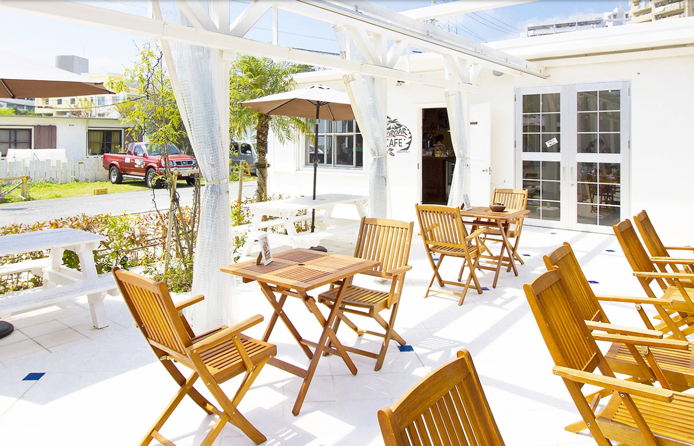 2015年8月に浦添市の港川ステイツサイドタウン内にオープンした、ハワイアンテイストのCAFEです♪広々としたオープンテラスは南国のリゾートを感じさせる雰囲気で、ハイビスカスやプルメリア、ヤシの木に囲まれており、お客様も働くスタッフもリラックスした気持ちになれる空間になっています。