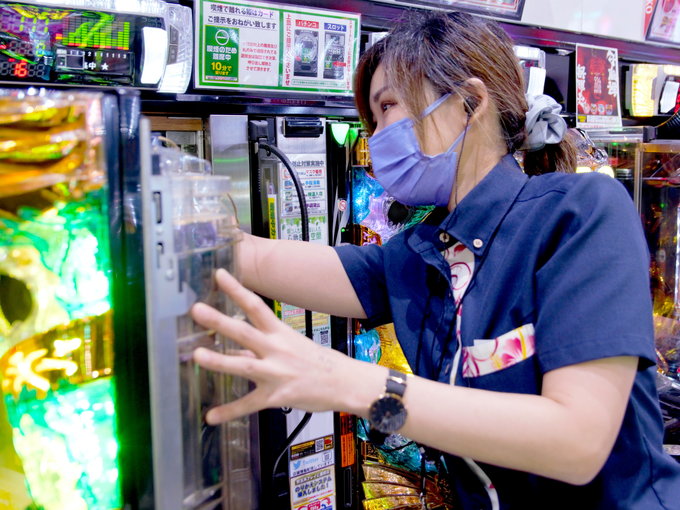 パチンコの楽しさとは遊技だけではなく、スタッフとの会話や店内に流れる音楽、明るい店内の演出など、私たちが提供するすべてがお客様の笑顔のタネとなります。