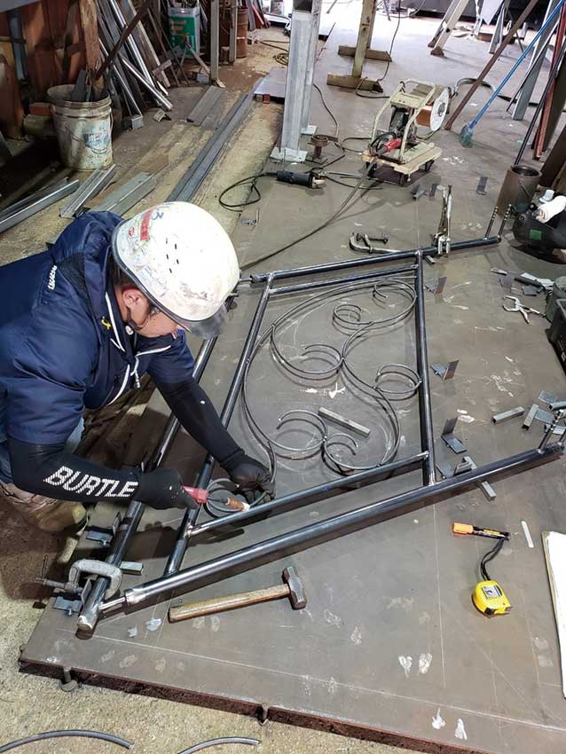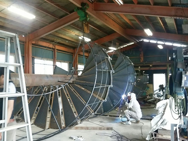 鉄やステンレスの加工のほか、商業施設や学校などで使用される階段などを製作しています。当社の強みは、デザイン性の高い設計や曲げ加工を得意とする専門技術者がいること。お客さまの要望に合わせてイメージを具体化し、安全第一で真心込めた物づくりに取り組んでいます。