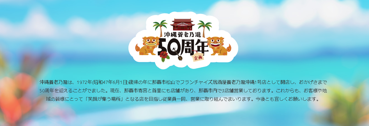 当社は沖縄県で『養老乃瀧』を3店舗運営しております。