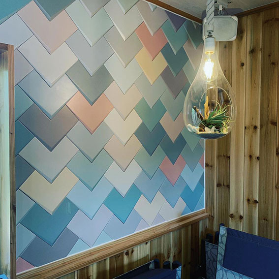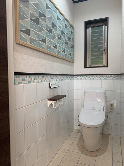 施工にあたっては、女性営業と一級タイル張り技能士の資格を持つ職人がタッグを組み、お客さまの要望に柔軟に対応しながら、現場に合わせた施工をご提案させていただきます。また、店舗ショールームでは、現物を見て触れていただけるように、さまざまなタイルのサンプルや施工例(ビフォー・アフター)をご用意しています。