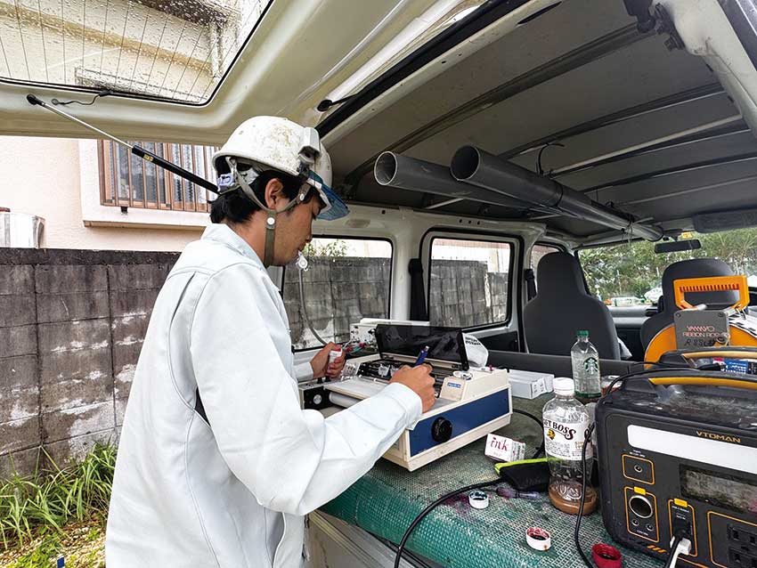 あまり聞いたことのない仕事でしたが、「沖縄県民が安心して暮らせる手伝い」という仕事内容に興味を持ち入社させていただきました。未経験でしたが、探査機など道具の使い方から丁寧に教わり、約半年で県への申請書類を作成できるまでになりました。