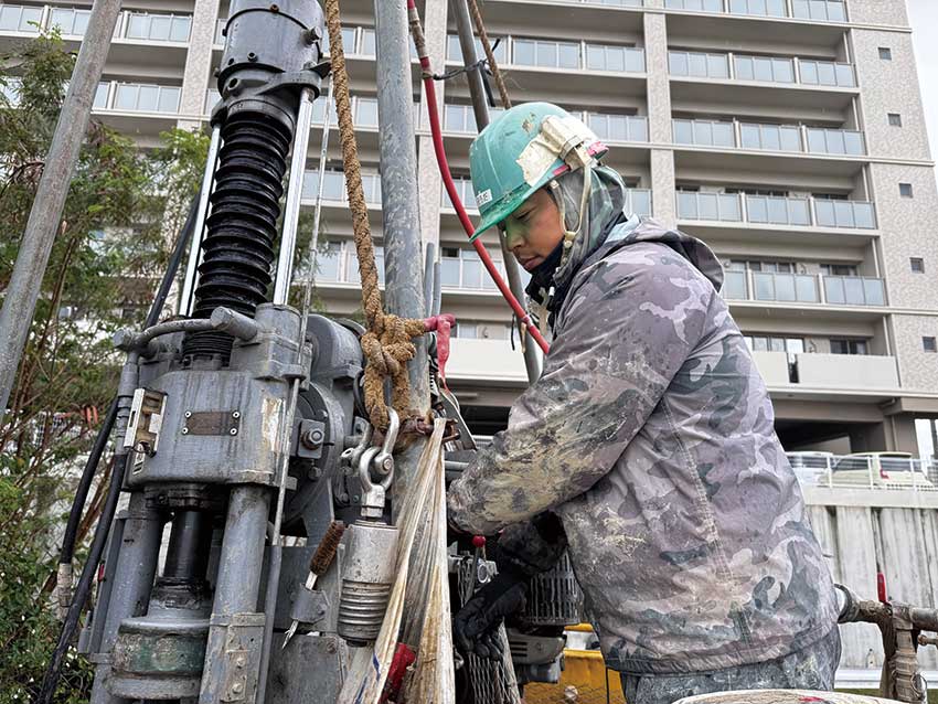 地球に穴をあけるボーリング孔で、地下に爆弾がないか調査しています。実際に不発弾を発見したこともあります。緊張しましたが、見つけられたという安堵感と同時にやりがいを感じました。当社は和気あいあいとした雰囲気の中、安全を守るという使命感に溢れた社員が誇りを持って仕事をしています。分かりづらい仕事かもしれませんが、丁寧に教えますので安心して飛び込んできてください。