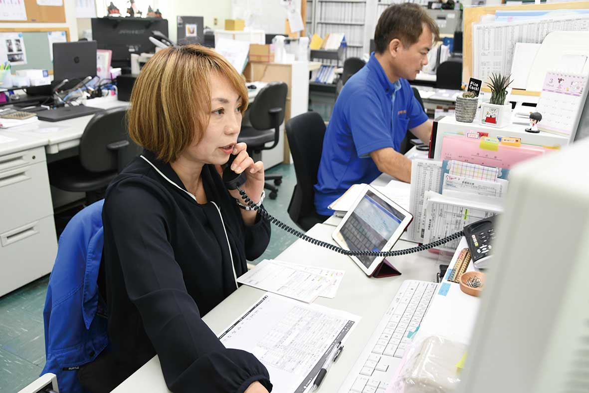 お客さまの問い合わせ対応や請求書発行、情報登録などを行っています。「火がつかない」「お湯がでない」という問い合わせのときは、困っているお客さまに安心感を与えるように、専門用語を使わず、一つ一つ丁寧に質問をしながら故障の原因を探り、一緒に解決できるような会話を心がけています。現在は、ガスの残量を自動でチェックするシステムを導入していますが、それを見逃さないように二重チェックにも力を入れています。