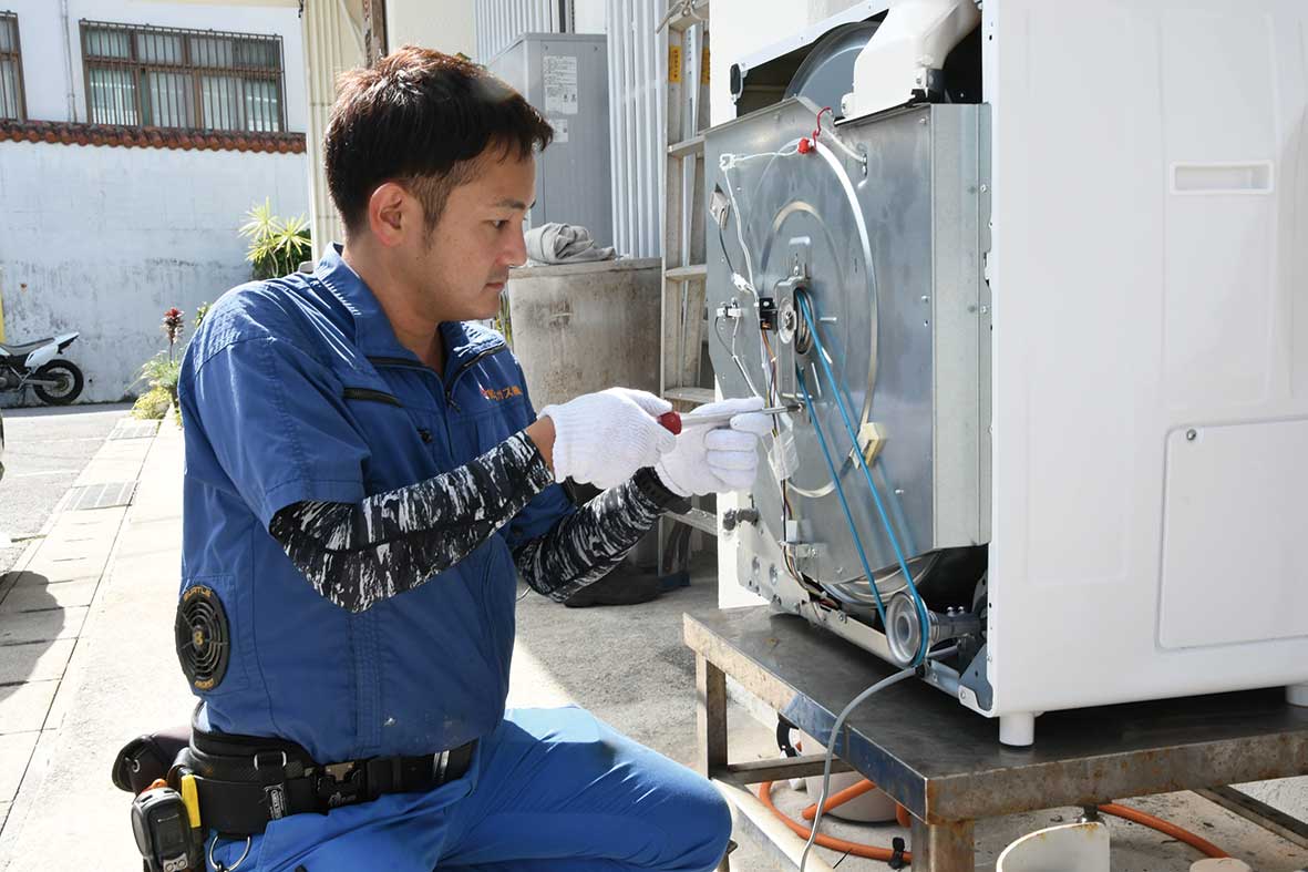 未経験でしたが、ベテランと若手、上司と部下の距離が近く質問がしやすいので2カ月ほどで慣れました。専門用語や工具の使い方などささいな質問でも、仕事の手を止めて答えてくれた先輩方には感謝しています。一つ仕事を覚えると作業が増えてくるのでやりがいを感じています。ガス乾燥機を取り付けたときお客さまから「こんな便利なもの、もっと早く付ければ良かった」と喜ばれたこともあります。