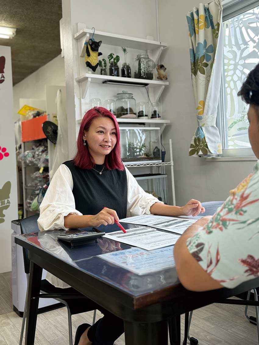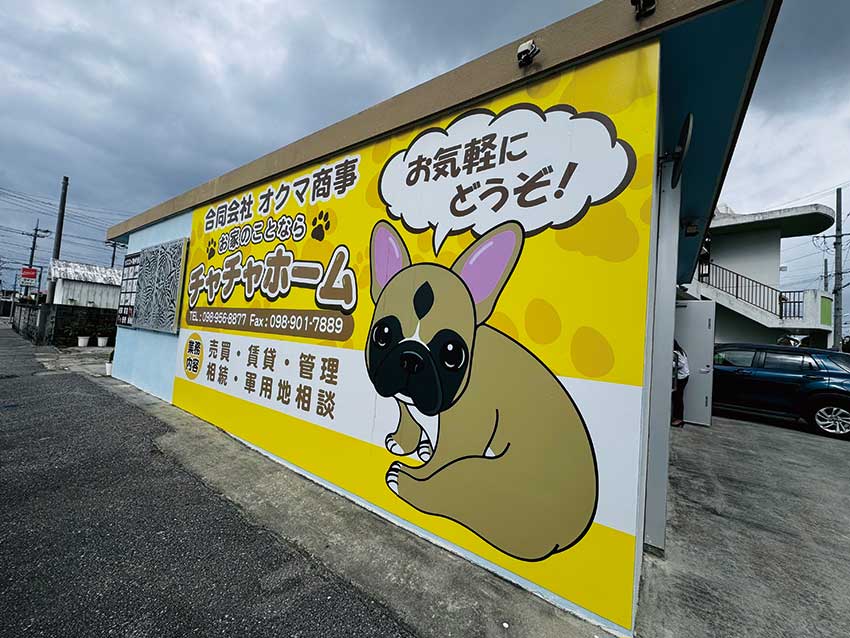 1982年創業以来、自社物件の管理を主に行ってきましたが、長年の経験と知識を生かし、不動産を通じて地域の人々のお役に立ちたいと5年前に法人化。屋号「チャチャホーム」で不動産業を営んでいます。「お堅い」「難しい」という不動産屋のイメージを払拭するために、難しい専門用語を使わずに分かりやすい言葉で説明するようにしています。ゆんたくをしに来るオーナーさんが多いのも自慢に一つで、誰でもいつでも気軽に入ってきやすい「街の不動産屋さん」を目指しています。愛犬(看板犬)のチャチャ丸のイラストを使った看板を出しているためか、ペットサロンと勘違いして入ってくるお客さまもいますが、大歓迎です。不動産の売買・賃貸には、売主・買主、貸主・借主がいますが、一方通行にならないように、聞く力・交渉力に自信を持って取り組んでいます。双方にとってのメリット・デメリット、どんなささいなことでも伝える「ウソはつかない不動産屋」を目指しています。