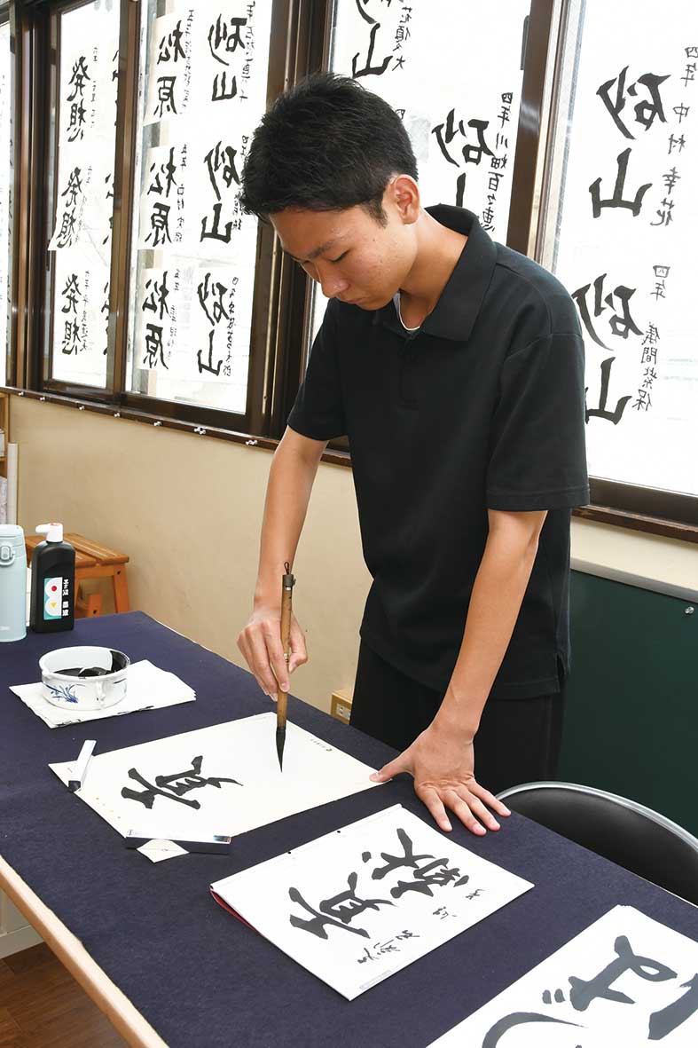 小学2年のときに書道を習い始め13年になります。AIのエンジニアを目指し、一度は書道を中断していた時期もありました。そんなとき展覧会場で、茅原書藝會師範の金城翔山先生の作品を見て「また、書きたい」と欲望がわき上がってきたんです。それから書道教室に戻り、鍛錬の日々。今年4月に師範免許を取りました。師範試験に向けたお稽古では「千字文」にも挑戦しました。10時間以上かけて書き上げましたが、書いているうちに「無」の状態になれました。夜遅くまで熱心に指導してくれた麗泉先生には感謝しています。この気持ちを忘れずに、多くの子どもたちに書道の楽しさを伝え、お弟子さんを増やしていきたいと思います。
