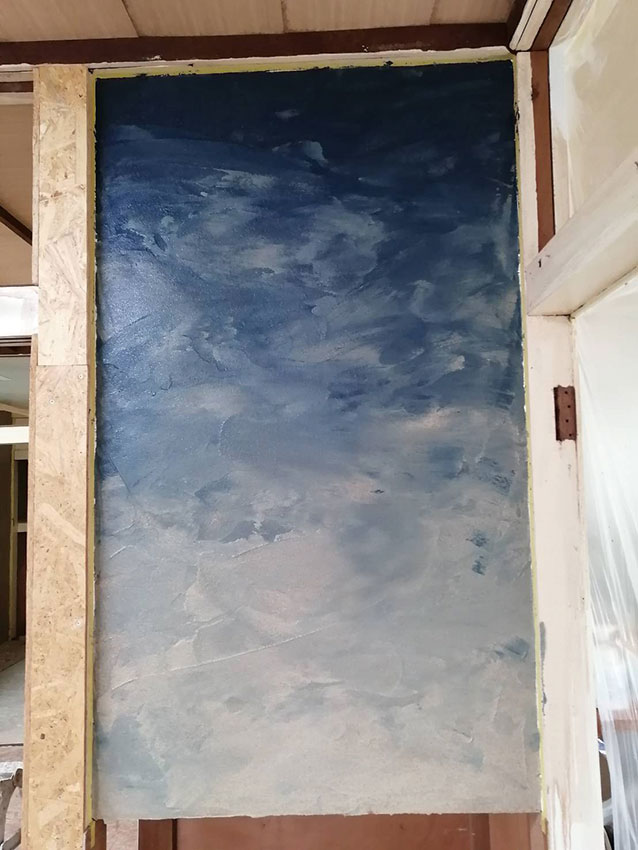 琉球藍使用でグラデーションに仕上げた壁(民間住宅)