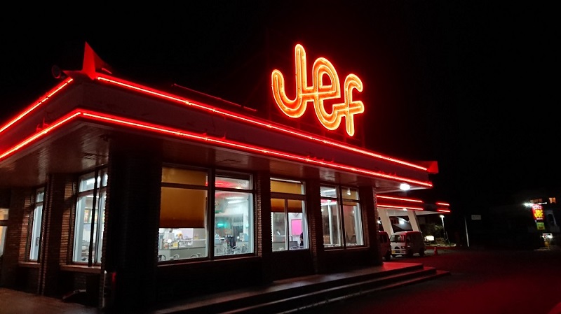 | 沿革 | 昭和47年(1972) 2月 エーアンドダブリュ与那原(資)設立 昭和48年(1973) 3月 A&W与那原店開店 創業 昭和55年(1980) 4月 A&W豊見城店開店 昭和60年(1985) 3月 バーガークィーン新栄通り開店 昭和61年(1986) 7月 A&WからJEFへ店名変更 昭和61年(1986) 7月 ジェフ沖縄株式会社設立登記 昭和62年(1987) 9月 ジェフ沖縄(株)がエーアンドダブリュ与那原(資)を吸収合併 昭和63年(1988) 3月 ミニバーガー新発売 平成4年(1992) 8月 ジェフ坂田店開店 平成5年(1993) 5月8日 ゴーヤーバーガー新発売 平成5年(1993) 7月 TSUTAYA坂田店開店 平成6年(1994) 7月 ゴーヤーリング新発売 平成7年(1995) 5月8日 ぬーやるバーガー新発売 平成7年(1995) 12月 TSUTAYA与那原店開店 平成12年(2000) 7月 東京伊勢丹 沖縄物産展出店(~平成25年迄19回) 平成14年(2002) 3月 ラーメンさんぱち西原坂田店開店 平成14年(2002) 10月 ラーメンさんぱち豊見城店開店 平成16年(2004) 7月3日 ゴーヤージュースを夏限定で発売 平成19年(2007) 5月8日 マギーぬーやるバーガー期間限定で発売 平成20年(2008) 1月 ジェフメール会員登録開始 平成21年(2009) 6月 「日経プラス1」ご当地バーガーランキング「ぬーやるバーガー第8位」 平成21年(2009) 7月 沖縄県認定「おきなわ食材の店」 平成24年(2012) 10月 4店舗の全照明をLEDへ交換 平成26年(2014) 3月 ジェフ豊見城店太陽光発電(41.5kw)事業開始 平成27年(2015) 8月 TV番組「おじゃMAP沖縄2時間スペシャル」でジェフ豊見城店放送 平成28年(2016) 7月6日 ゴーヤースラッシュを夏限定で発売 |