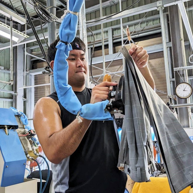 手作業によるシミの確認やシミ抜き作業で丁寧かつキレイに行っています♪