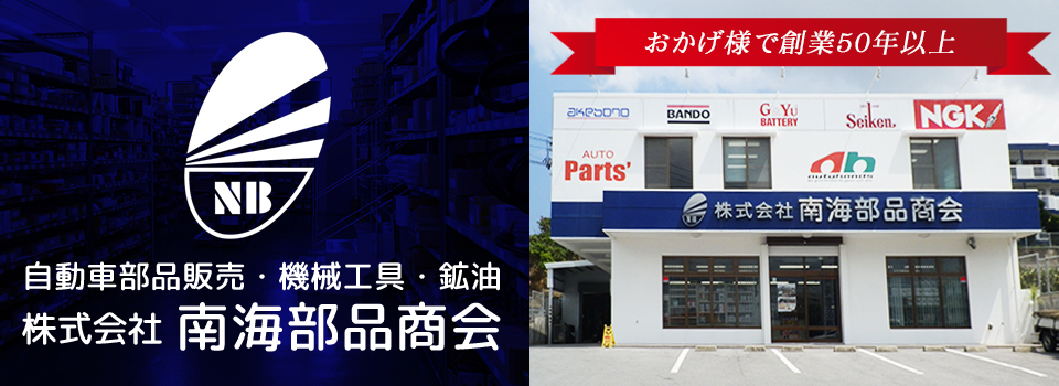 | 沿革 | 1967年 9月(昭和42年) 商号前島部品店を新垣達男氏が創業 1974年 4月(昭和49年) 会社設立 商号 株式会社 南海部品商会 1980年 3月(昭和55年) 本社を那覇市国場より豊見城市根差部へ移転 1986年 2月(昭和62年) 本社を豊見城市高安へ新築移転 1989年10月(平成1年) 資本金1800万へ増資 1998年12月(平成10年) 南風原町与那覇へ南風原営業所新築移転 2005年 7月(平成17年) 浦添市勢理客に浦添営業所 開設 2010年12月(平成22年) 南風原営業所を与那原町上与那原へ新築移転 2011年 5月(平成23年) 県道11号拡張工事の為、本社を豊見城市字名嘉地へ新築移転 2011年12月(平成23年) 代表取締役社長に仲里 賢氏が就任 2013年12月(平成25年) 宮古島市に宮古島営業所を開設 2016年 3月(平成28年) 浦添市西原に浦添営業所を移転 2017年 9月(平成29年) 創業50周年 2020年 4月(令和2年) 笹尾商工㈱のオート用品部を統合 |