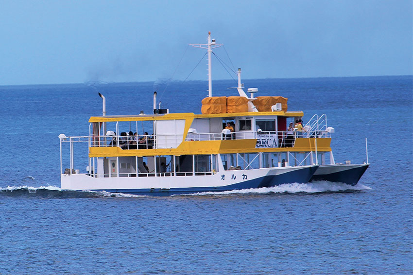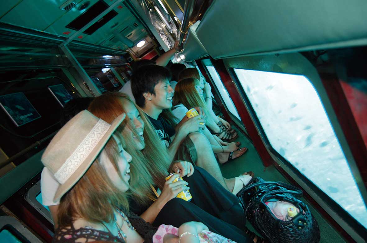 「オルカ号」は、天候に合わせてベストポイントを案内。約60分のクルージングで船内からカラフルな熱帯魚を楽しむことができます。
