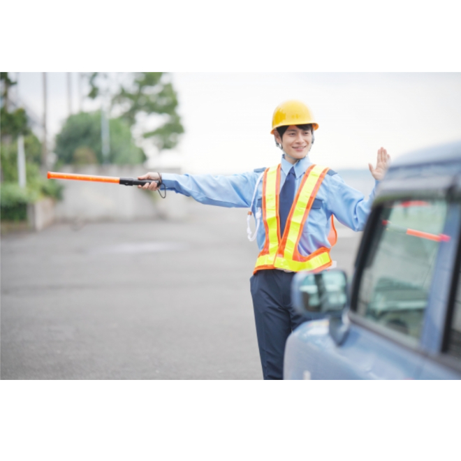 駐車場や工事現場などで、車や歩行者が安全に通行できるように誘導します。