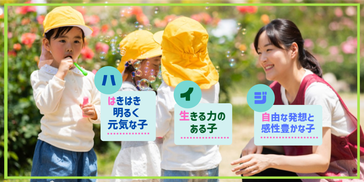 当園は「心身ともに豊かでたくましい子ども」を保育目標に掲げ、個性を認め合い、互いに助け合い、慈しみながら共存することの喜びを感じる心を育み、健全な心身の発達を図ります。