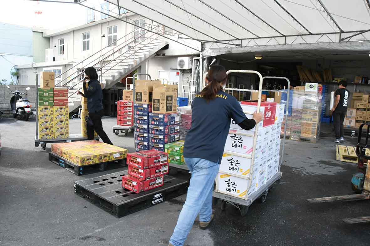 設立から50年余り“那覇酒販(なはしゅはん)”の愛称で、お付き合いさせていただいている得意先は500件余り。県内全域を商圏として営業を展開し、雑貨店やホテルなどにも卸し販売をしています。