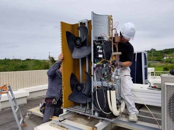 空調設備工事をメインに、一般住宅から、ビル・学校等の空調機設備工事・修理・分解洗浄・メンテナンスを行っている会社です。