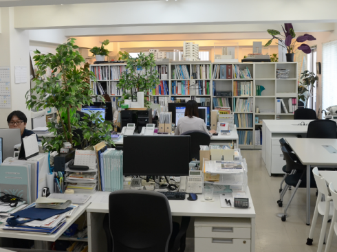 清潔感ある綺麗なオフィスです。スタッフ同士とても仲が良く、和気あいあいと仕事をしています。