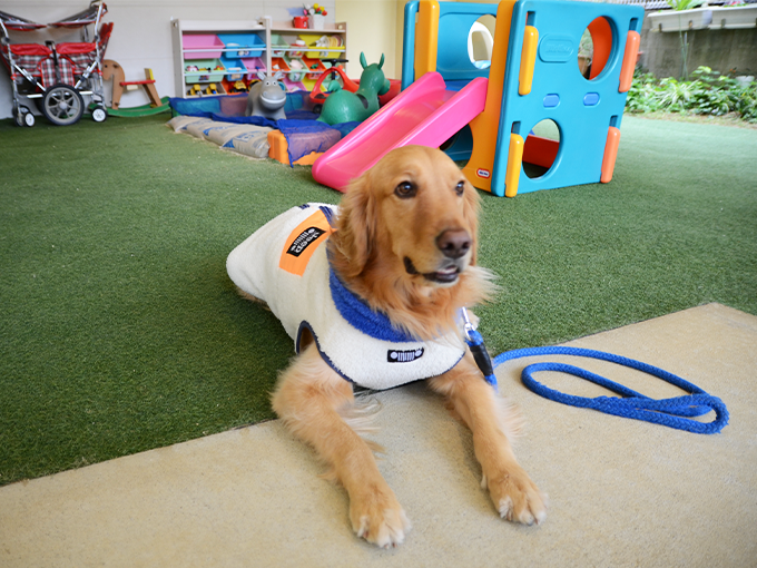 園児や職員たちをいつも癒してくれるゴールデンレトリーバーのセナちゃんがお出迎え♪