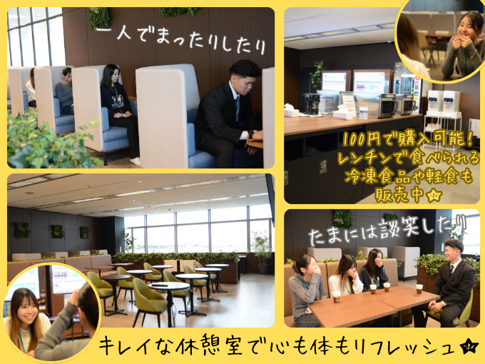 社内には広々としたリフレッシュルームがありますので、休憩時間に心身ともにリフレッシュできますよ♪