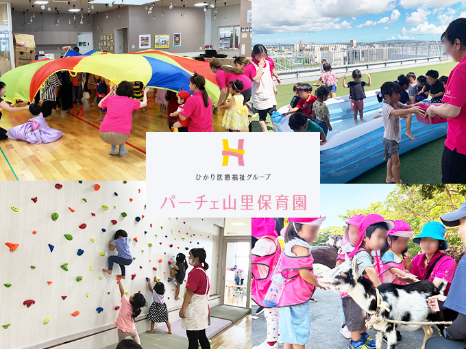 パーチェ山里保育園は、育ちざかりの心と体を育む多彩な体験と、働くママ・パパが安心して子どもを預けられる環境づくりに努めています。