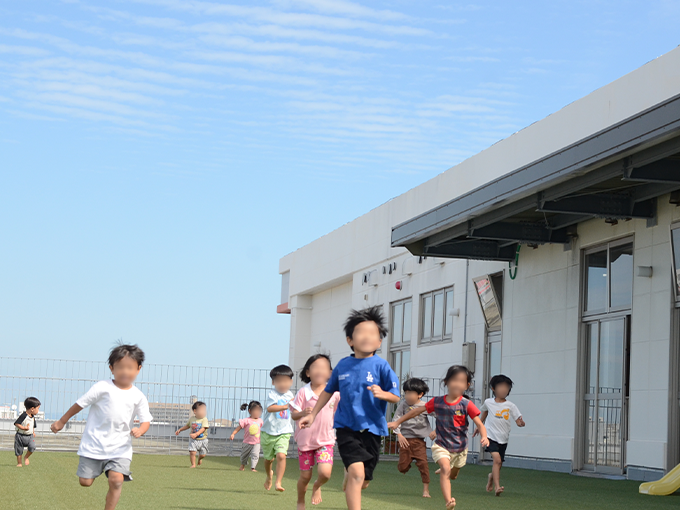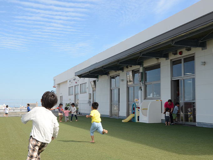 海が見渡せるロケーション抜群の園庭で、子どもたちといっしょにのびのび過ごせます♪
