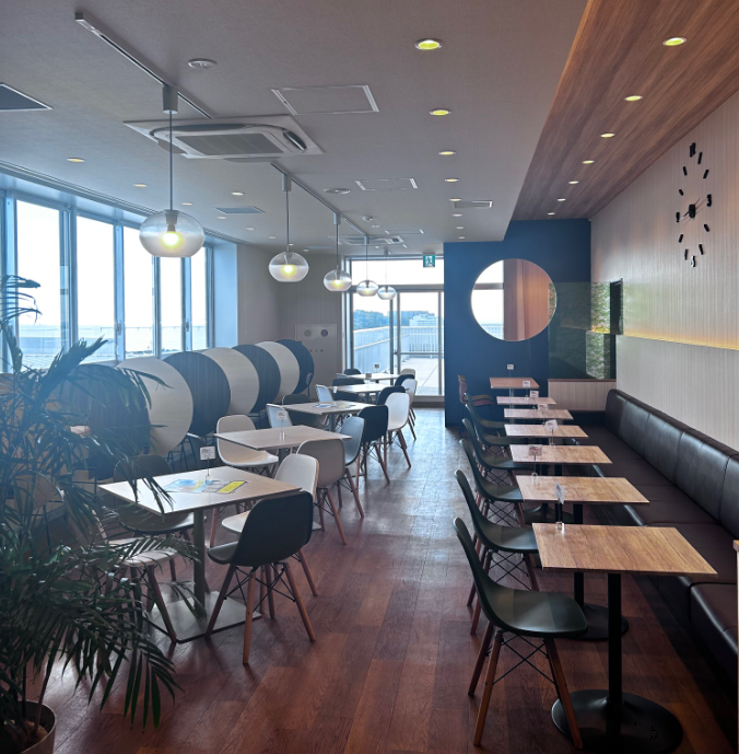 海の見えるカフェでゆっくり休憩もできます♪