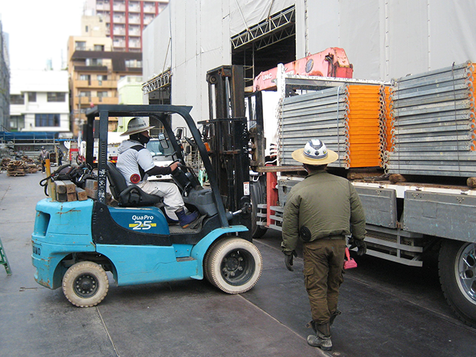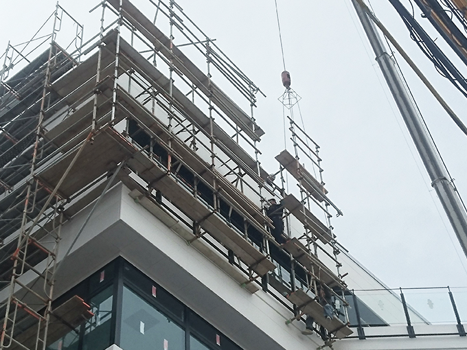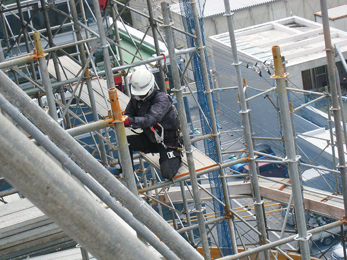 高所作業は安全確認を第一に行い、チームワーク重視で行っています!