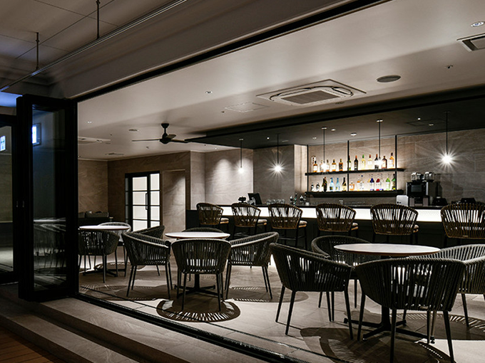 夜のカフェ&バーでは、沖縄のフルーツや泡盛を使ったオリジナルカクテルを、ライトアップされたプールサイドでお楽しみいただけます。