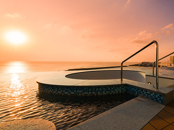 最上階のインフィニティプールやジャグジーからは、北谷の街や海、夕暮れ時には美しいサンセットが望めます。