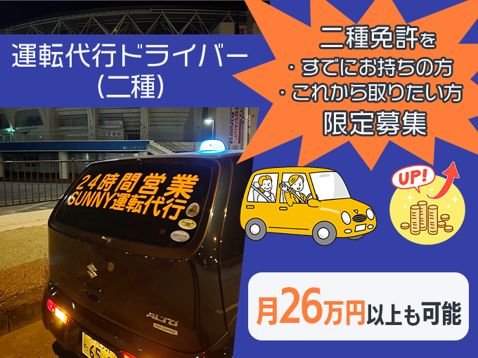 運転代行ドライバー/二種免許保持者・取得されたい方限定【未経験OK・Wワーク歓迎・20代活躍中】
