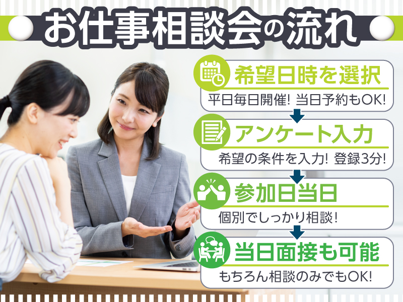 [所要時間]約30分/電話or対面(求人のご紹介のみ)