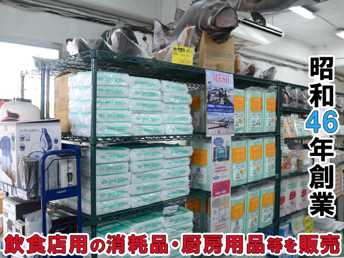 昭和46年に開業した有限会社サンワは、主にレストランなどの飲食店向けに発泡容器・食品容器や厨房機器・調理器具を販売する会社です。