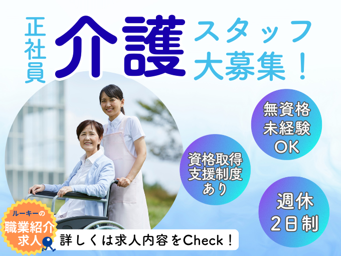 老人ホームの介護職(正社員)【夜勤専属|無資格・未経験OK|週休2日|資格取得支援あり】