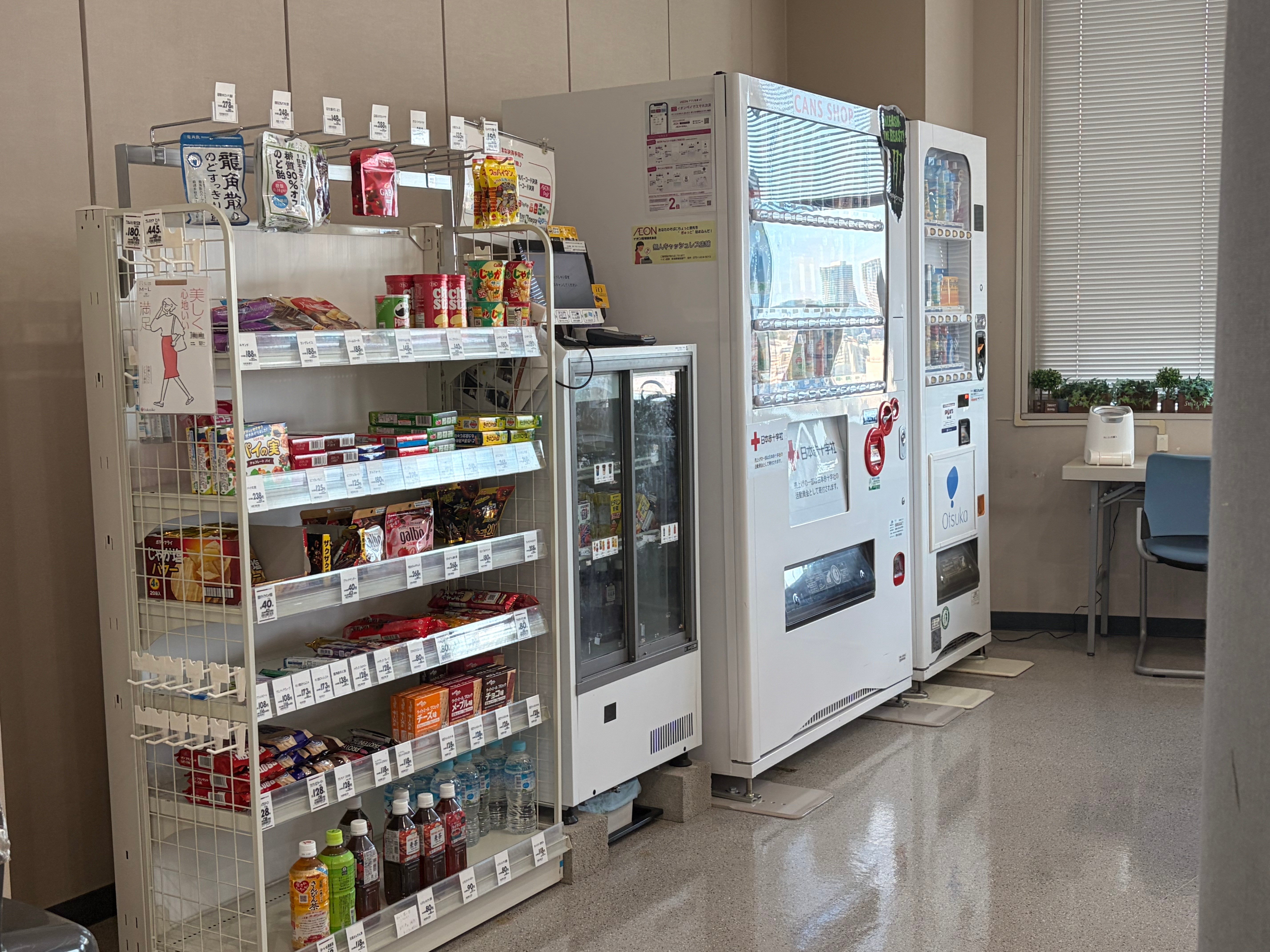 食堂には無人コンビニや自動販売機もあり★ちょっとしたおやつも購入可能♪