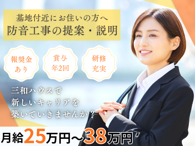 \女性スタッフ活躍中!/基地付近にお住いの方へ防音工事の提案・説明【報奨金あり|賞与年2回】