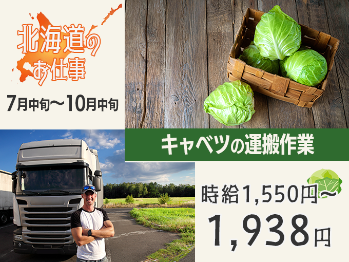 北海道でキャベツの収穫・選別作業【3ヵ月短期もOK/2DK格安寮あり/赴任旅費・帰任旅費は全額補助】