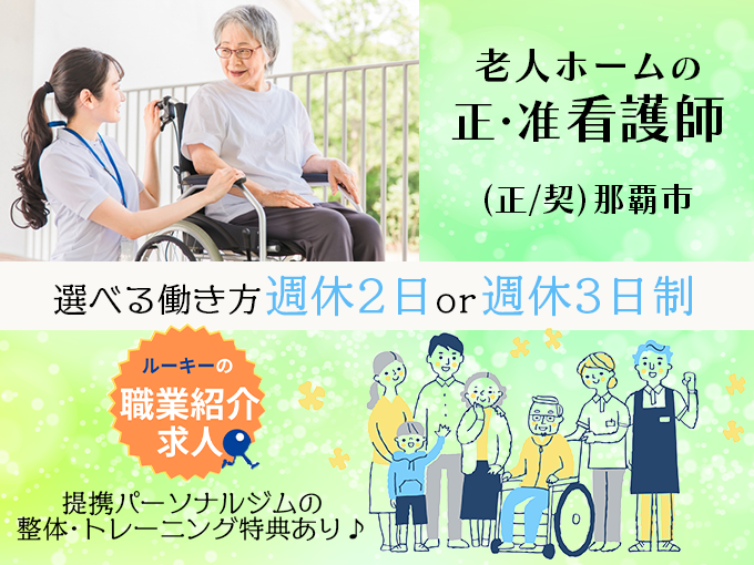 【職業紹介】老人ホームの介護士(那覇市勤務)≪オープニングスタッフ募集|選べる週休2日or3日制≫